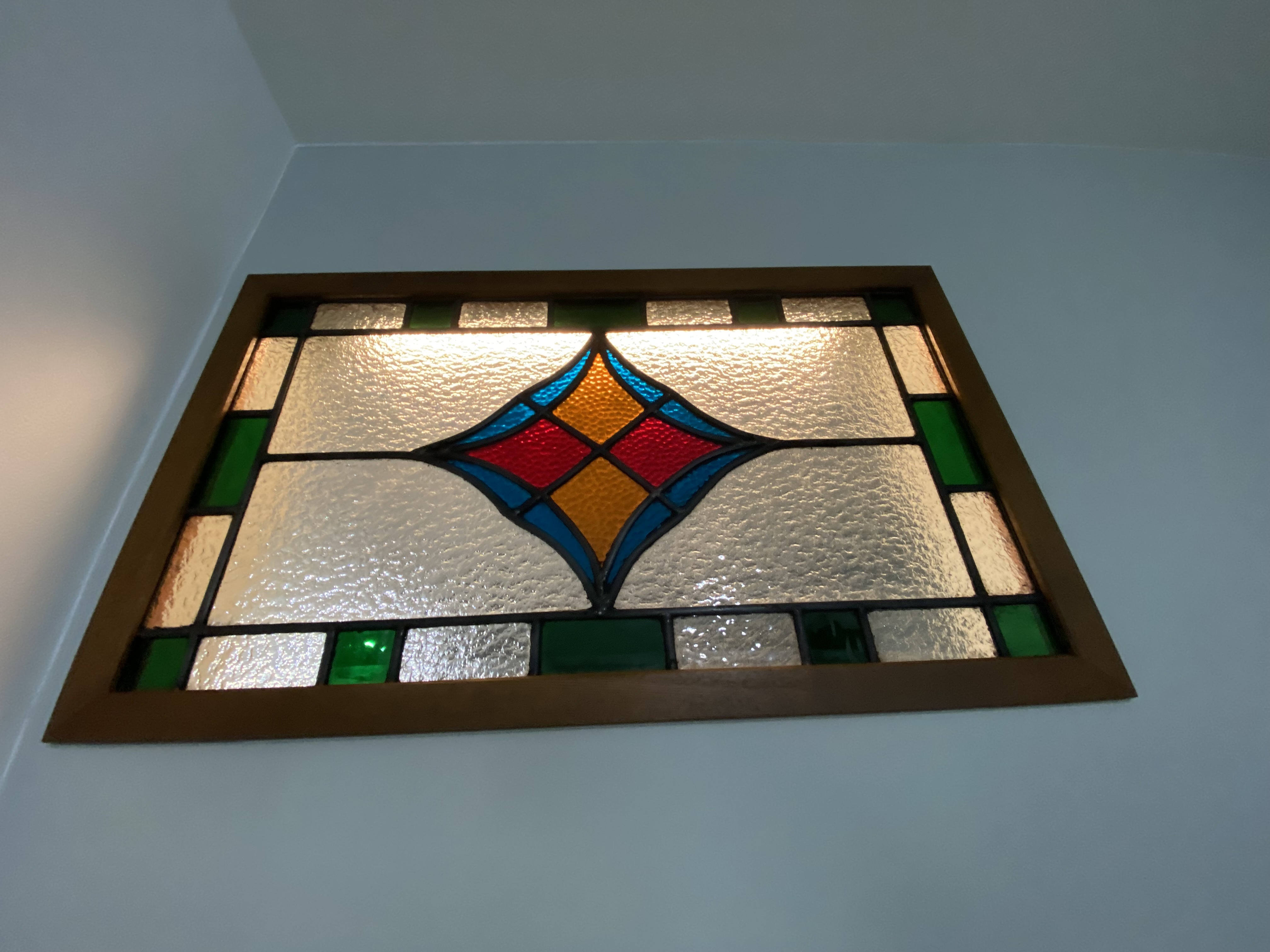 奥様製作のステンドグラスを設置し完成となりました。